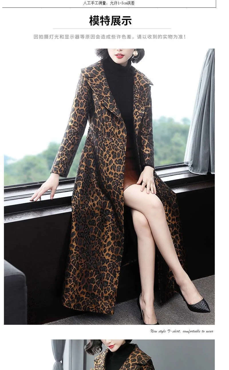 High End Fashion Leopard Coat Women Spring Autumn Korean Slim Long Trench Coat Female Windbreaker With Belt Mother Outwear 4XL
