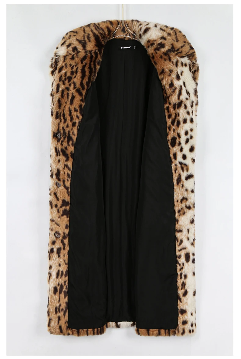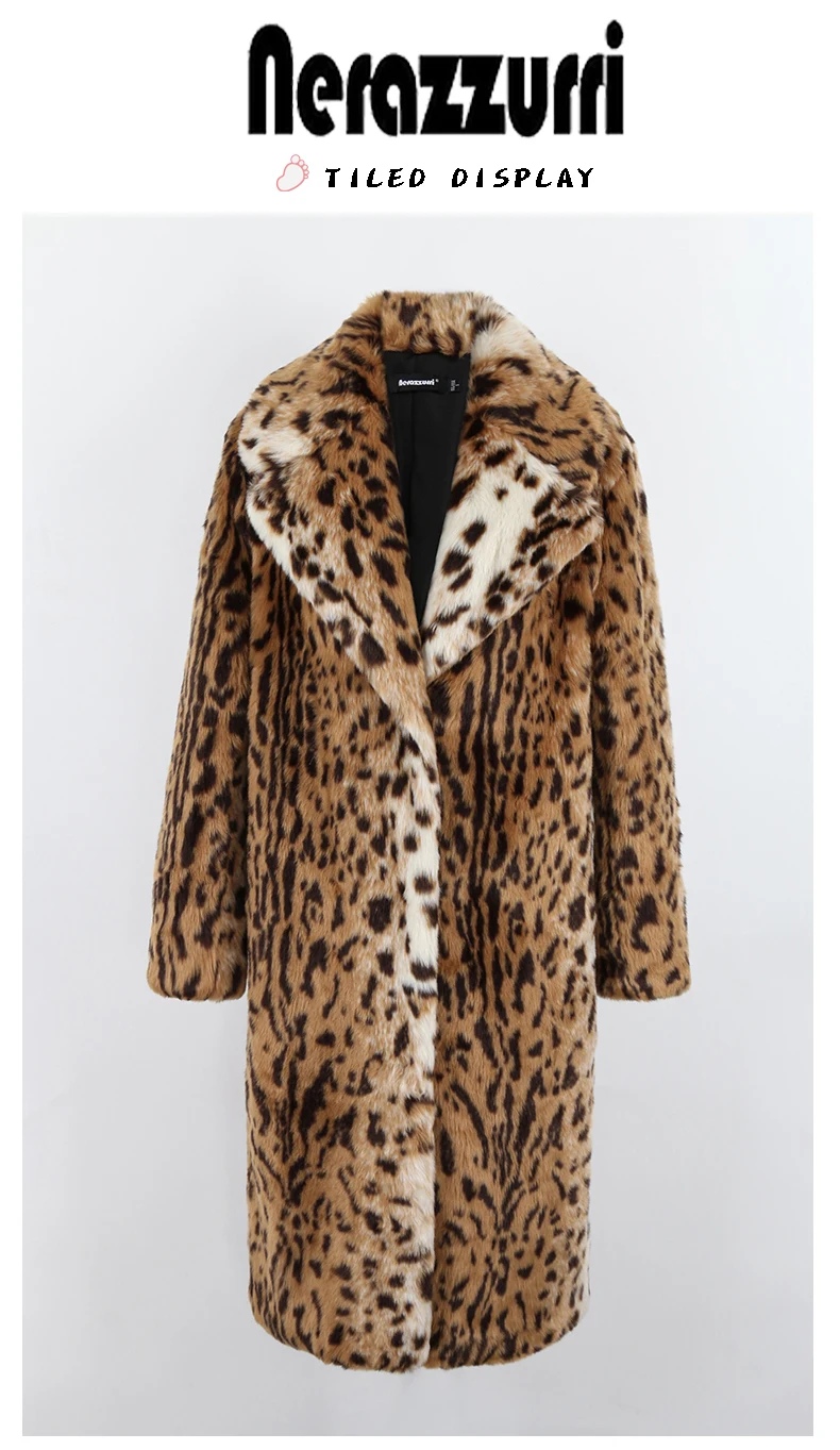Nerazzurri Winter Long Loose Luxury Thick Warm Soft Fluffy Leopard Print Faux Fur Coat Women Lapel Runway European Fashion 2022