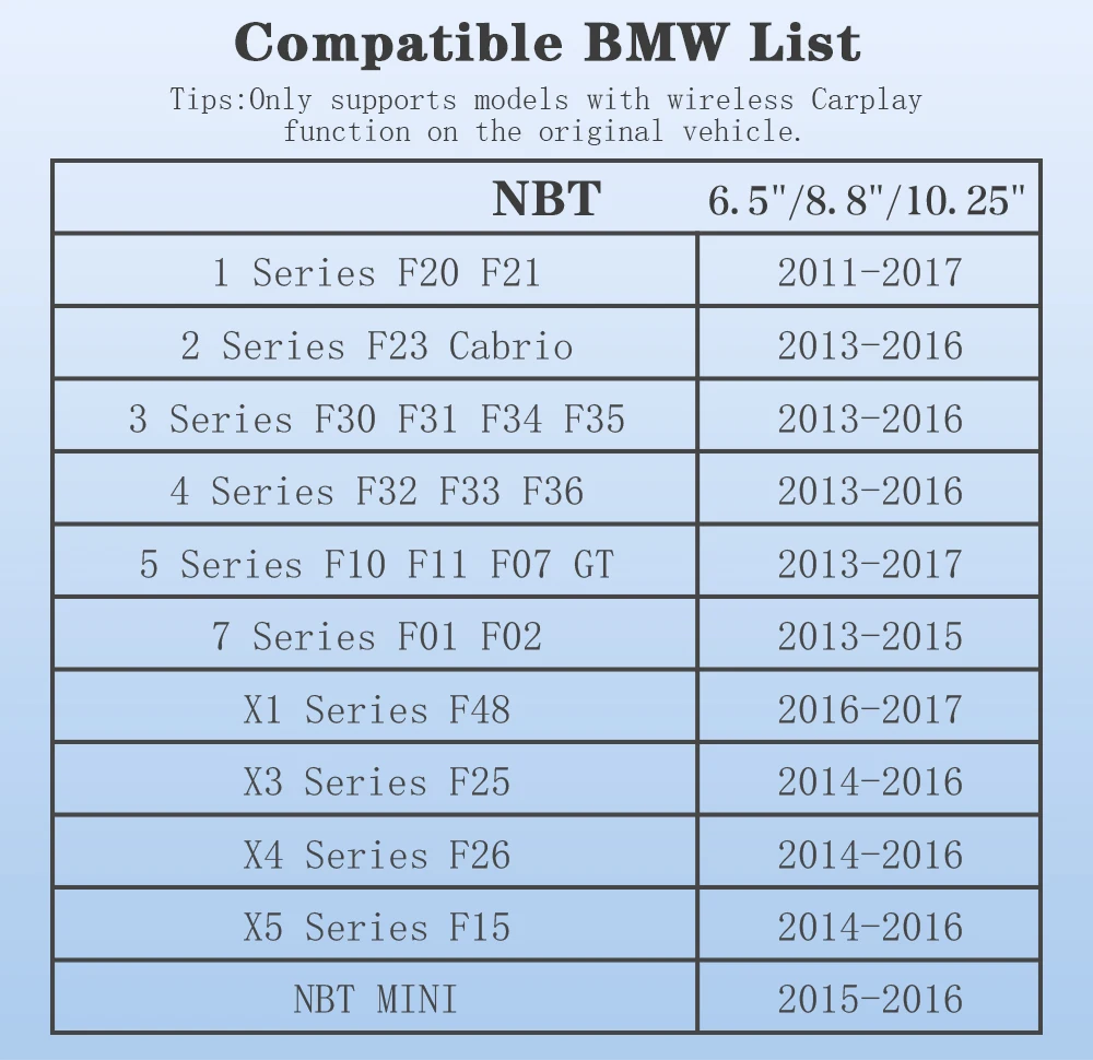 Fit for BMW 1 2 3 4 5 6 7 Series X1 X3 X4 X5 X6 with NBT System.